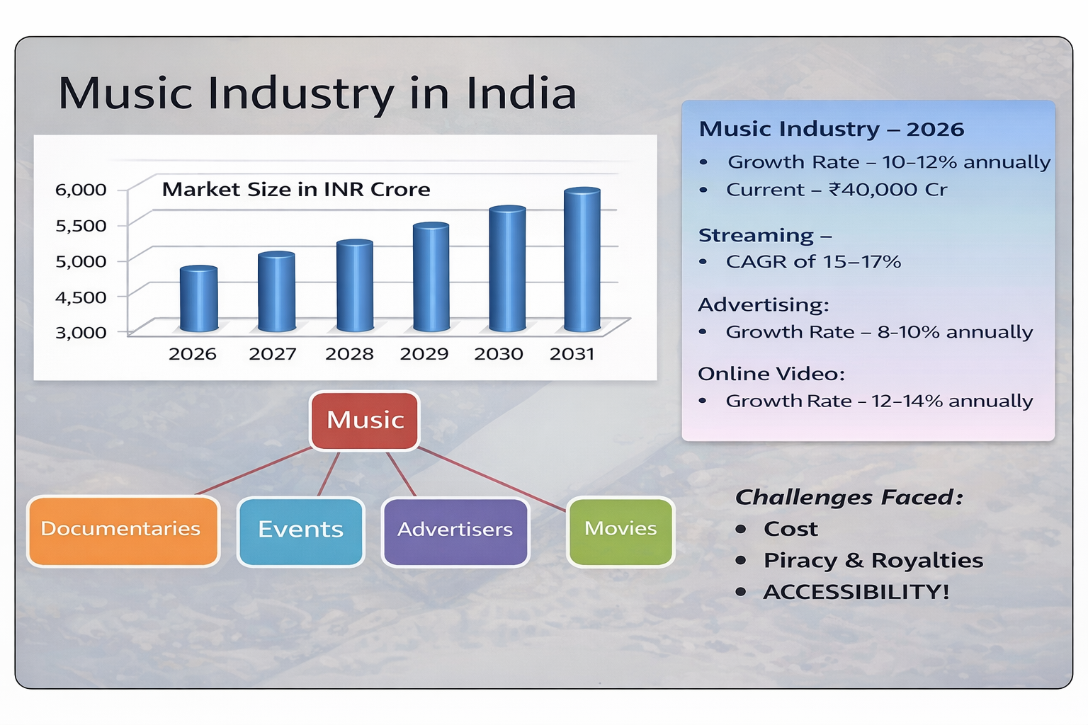 Indian recorded music industry revenue estimated at ₹3,500–4,000 crore, driven mainly by streaming platforms.